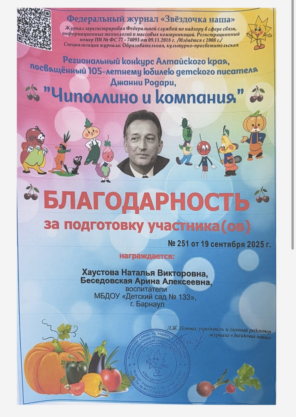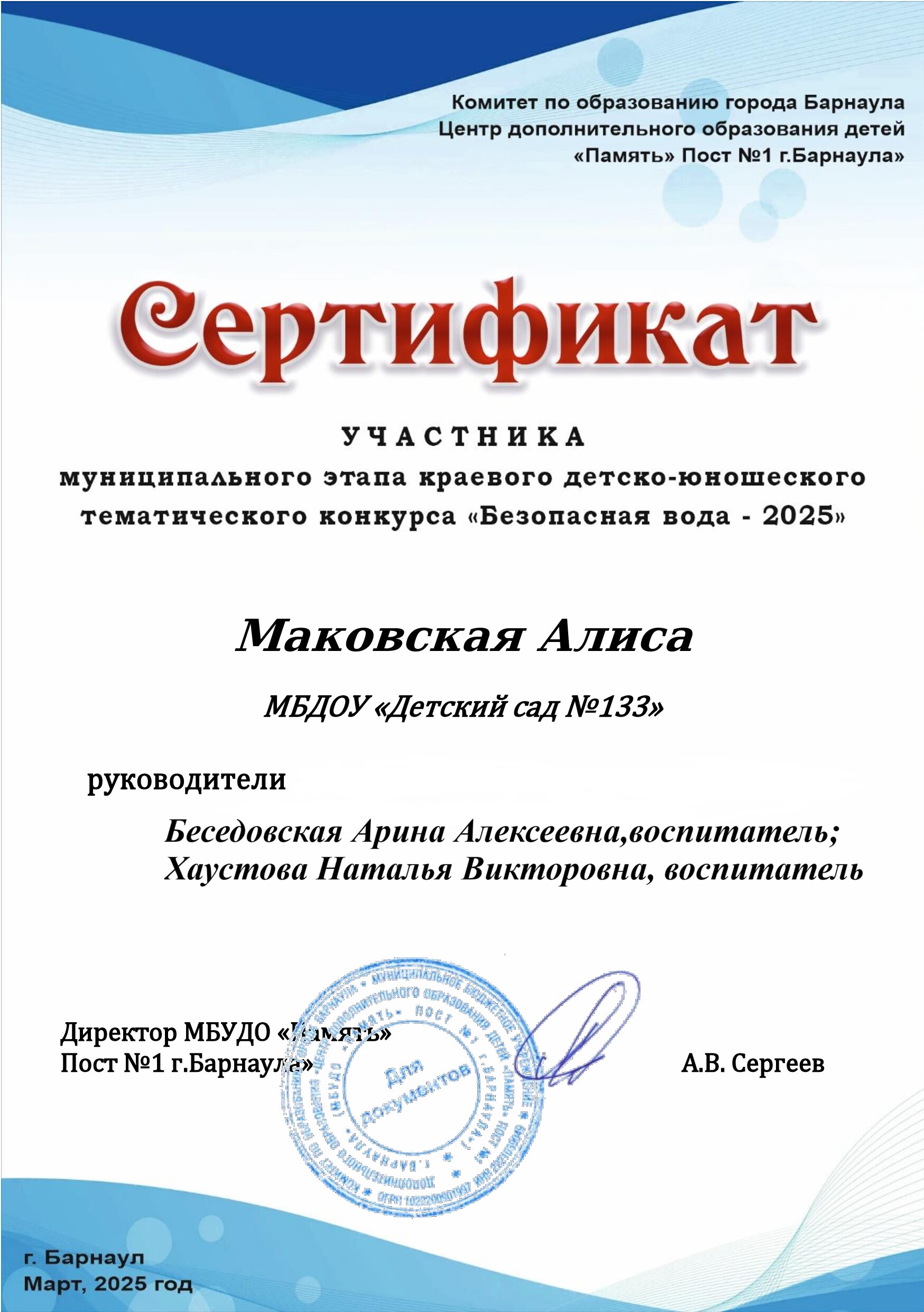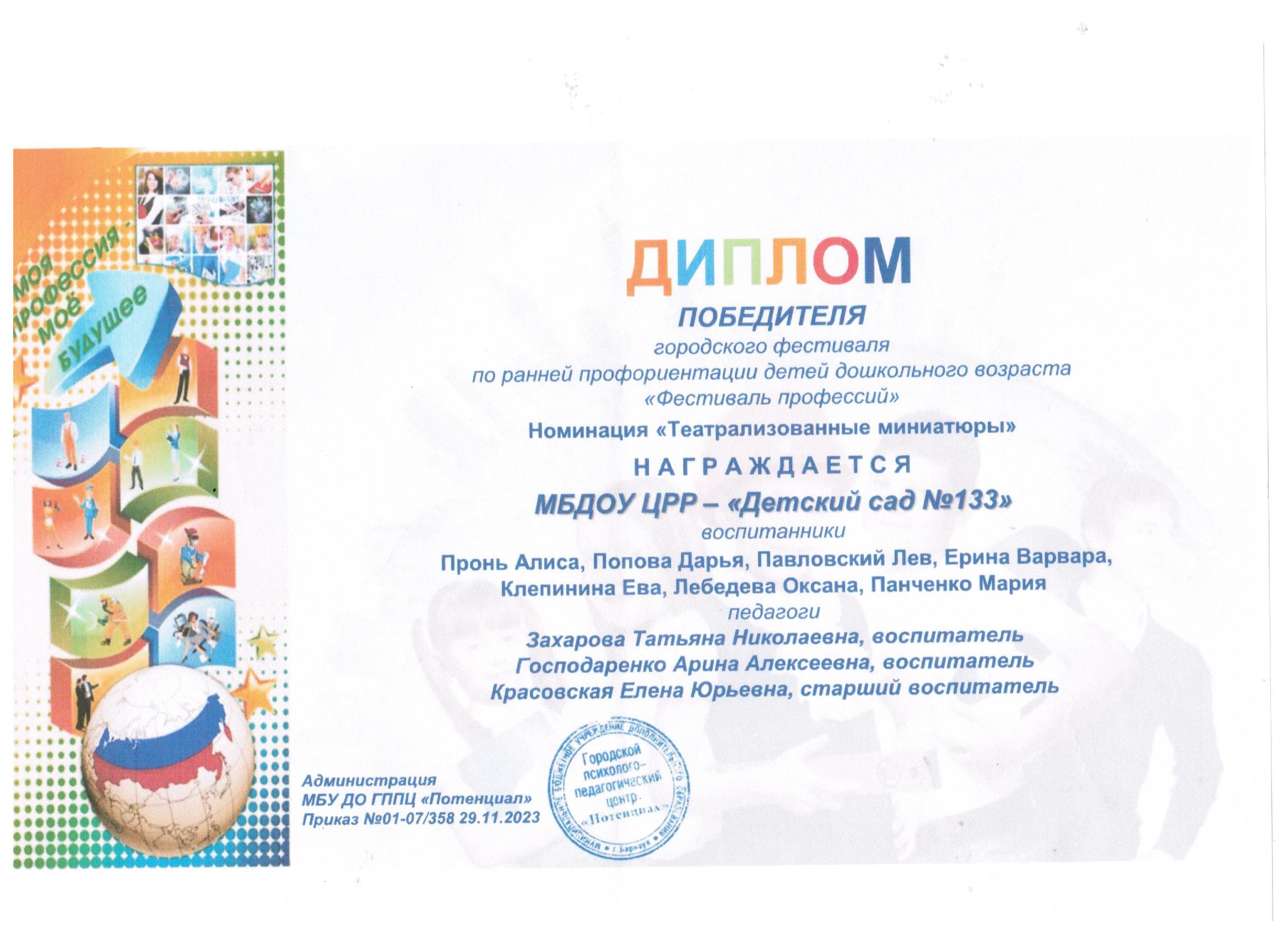 Муниципальное бюджетное дошкольное образовательное учреждение «Детский сад №133»