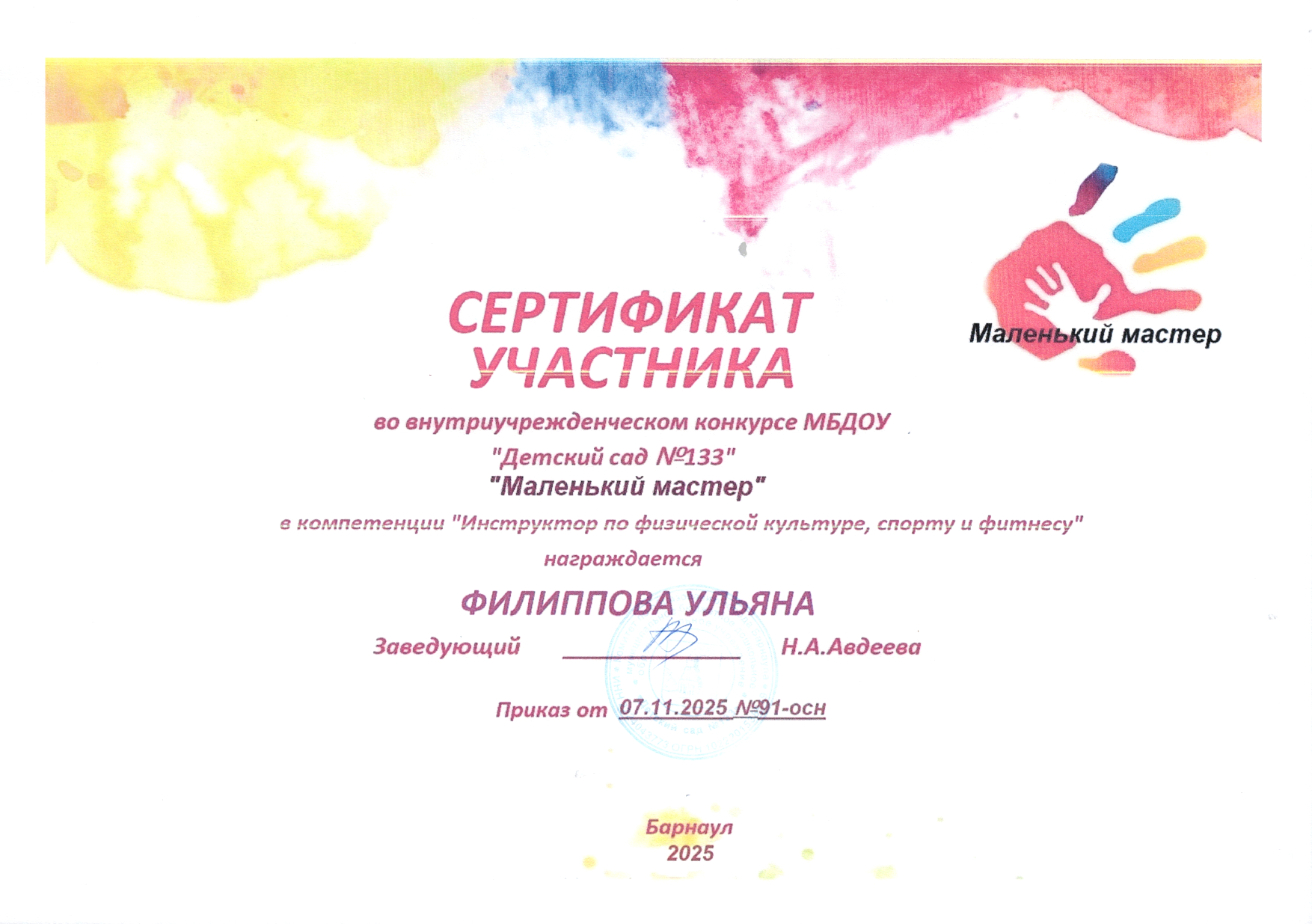 Муниципальное бюджетное дошкольное образовательное учреждение «Детский сад №133»