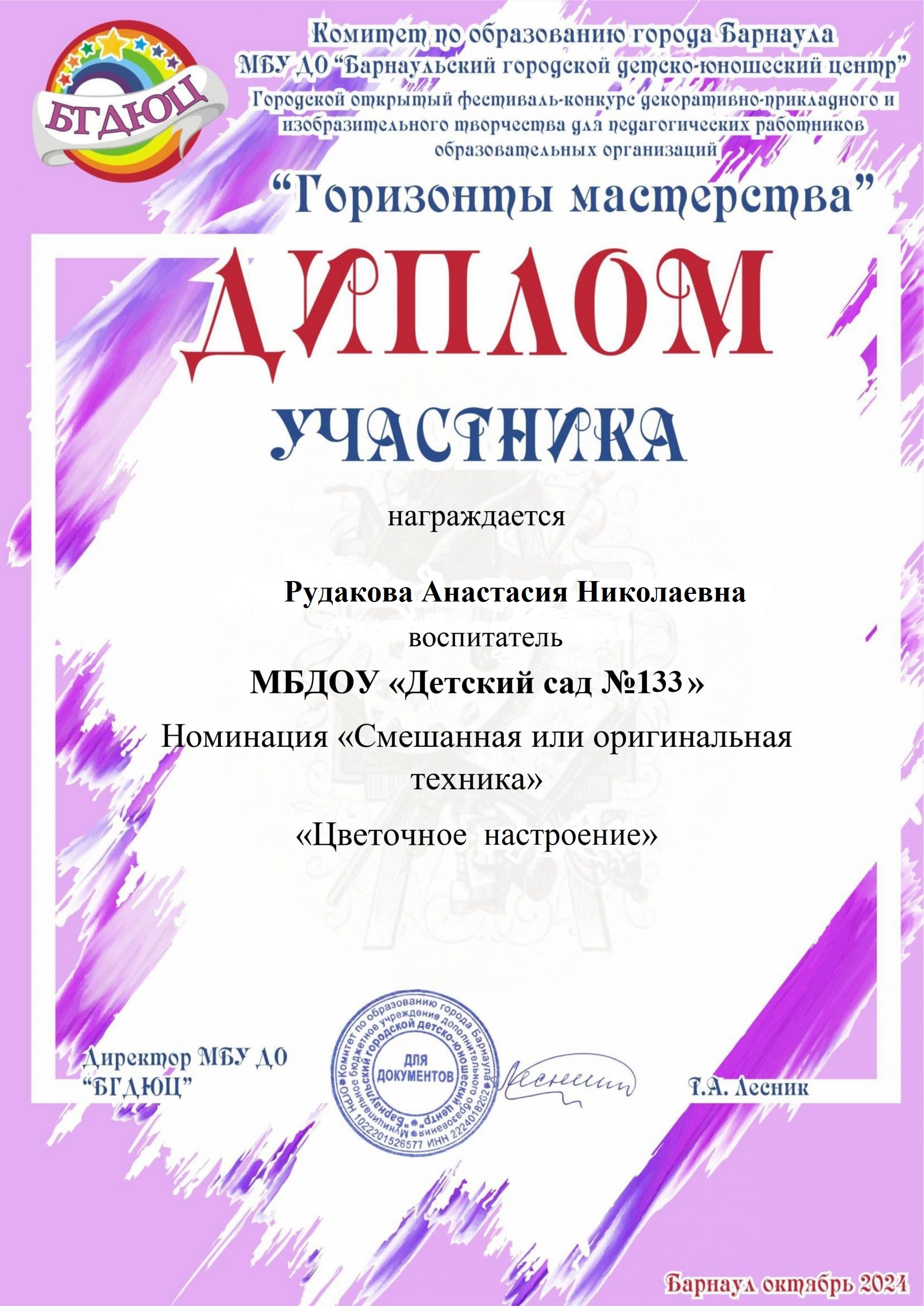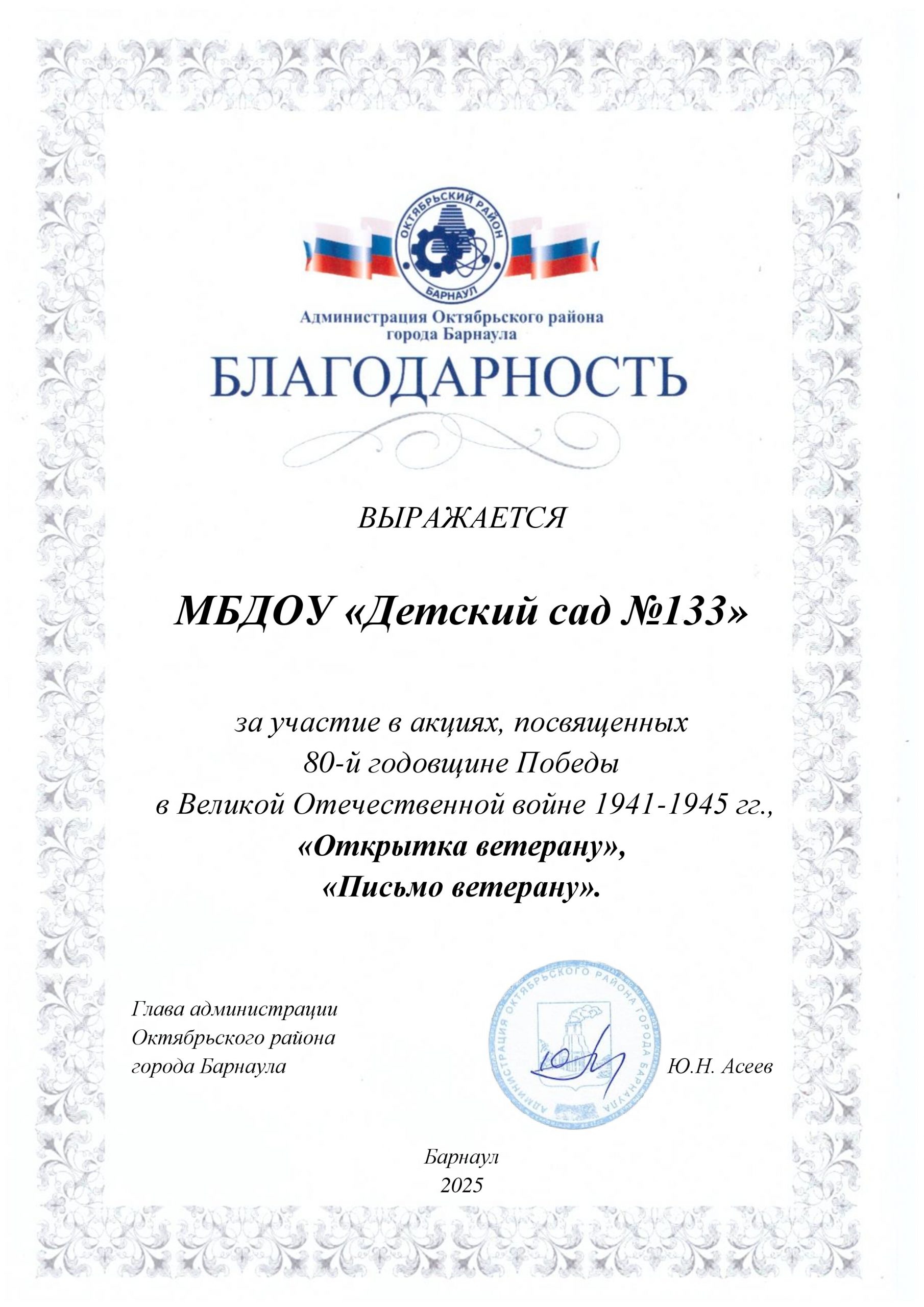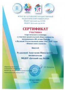 Муниципальное бюджетное дошкольное образовательное учреждение «Детский сад №133»